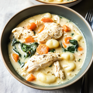 Crockpot Chicken Gnocchi Soup is a creamy, comforting dish made with chicken, gnocchi, and vegetables cooked slowly in a crockpot until flavors meld beautifully.