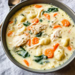 Crockpot Chicken Gnocchi Soup is a creamy, comforting dish made with chicken, gnocchi, and vegetables cooked slowly in a crockpot until flavors meld beautifully.