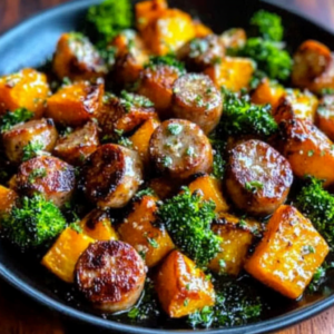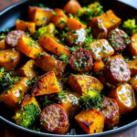 Juicy chicken (or turkey) sausage, caramelized sweet potatoes, and crisp broccoli come together in this delightful Sheet Pan Sausage and Sweet Potatoes with Honey Garlic Sauce – Cozy, Caramelized & Weeknight-Easy recipe. This meal is not just tasty; it’s perfect for busy weeknights or meal prep days. With its easy preparation and unique flavors, it promises to be a family favorite on any occasion.